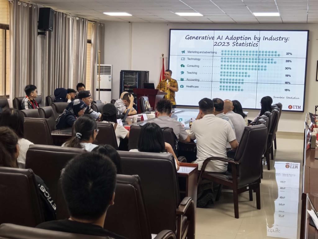 再后,马来西亚理工大学计算机公司Mohd Shahizan Mohamad副教授作了题为《未来已来:生成式人工智能如何重塑科研论文发表》的学术报告。报告深入剖析了生成式AI在科研写作、论文发表等领域的应用前景与挑战,讲解生动,引发在场师生浓厚兴趣与积极互动。报告结束后,双方围绕“人工智能遗产、微气候分析、数字人文”等主题展开热烈交流与讨论。