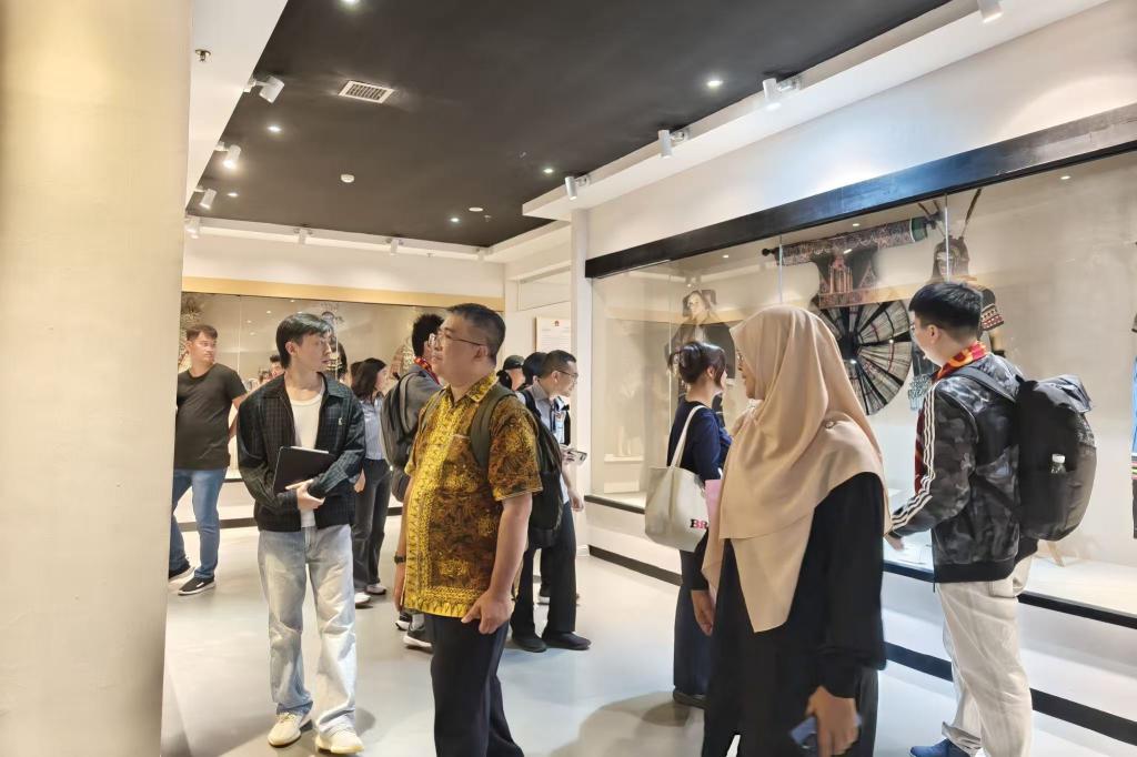 现场交流讨论结束后,马来西亚理工大学全球访学拓展计划研学团在公司相关负责人陪同下,参观了公司欧东花非遗博物馆,深入了解公司在民族文化传承与保护方面的成果。最后,全体与会人员合影留念。