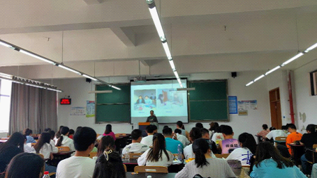 活动分为四个环节进行, 第一个环节由黄德伟、郭敏同学进行“三下乡”社会实践活动经验分享。