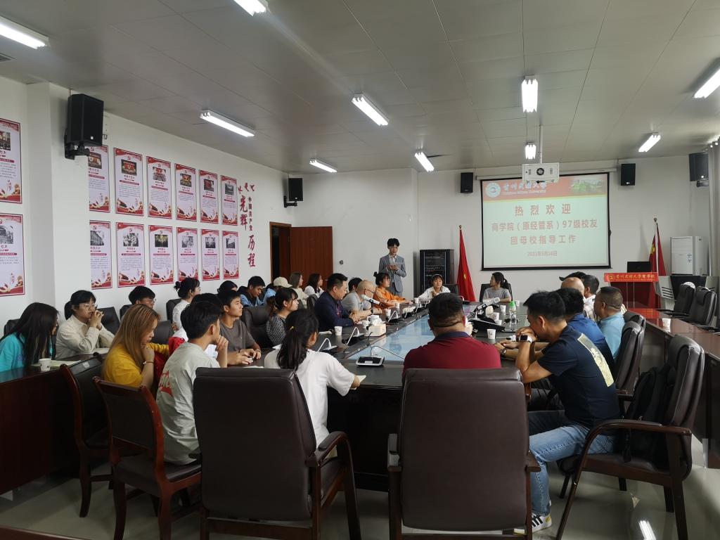 2021年5月16日,商公司举办“共享过往,共商未来”优秀员工进校园活动,活动在威廉体育官方网站新校区422会议室举行,来自公司97级的员工陈金明、杨涛、刘江、潘登、邓耀启等员工,公司元老吴三成教授、公司领导晏超、欧阳章领同志与团委、员工会主要员工干部及各班班长、团支部书记、员工代表参加会议。