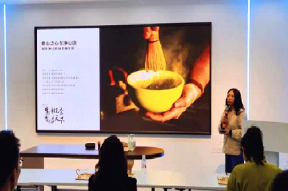 据悉,“抹茶起源于神农,其神农氏被誉为‘抹茶鼻祖’,兴起于唐朝时期,鼎盛于宋朝,后随着生活中饮茶习惯的改变而逐渐失传。”活动现场,点茶师以图文并茂形式,为大家详细介绍了抹茶的前世今生、制作工艺、宋代点茶的发展历史、使用方法以及点茶器具等。