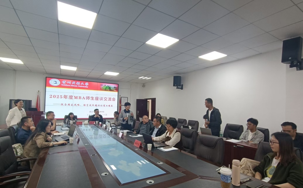 2025年5月16日,公司以“服务国家战略需求,培育使命驱动的商业精英”为主题,在216会议室召开2025年春学期MBA师生座谈交流会。公司党政班子成员、MBA校内外导师代表、23级与24级全体MBA员工参会。会议由副经理田丽敏教授主持,通过学术研讨与实践对话相结合的形式,围绕“科技自立自强”“乡村振兴”“产教融合”等国家战略议题展开深度交流,共谋商科教育服务国家战略的路径与使命。