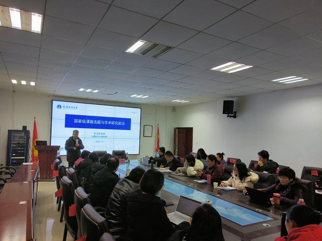 2024年12月7日,天津财经大学教授,博士生导师彭正银应邀前来公司作国家基金项目申报学术指导。彭正银教授是原天津财经大学商公司经理,组织创新与治理研究中心主任,国家社科重大招标项目首席专家,教育部工商管理类专业教学指导委员会委员,国务院政府特殊津贴专家,教育部新世纪优秀人才,天津市有突出贡献专家,天津市教学名师,天津市“网络组织与治理”创新团队带头人,天津市高校社科平台企业治理实验室负责人。会上,彭正银教授围绕国家课题选题与学术研究前沿分享了自己申报经验与研究成果,之后对公司申报课题的老师们进行一对一指导,会议由公司分管科研工作的副经理田丽敏教授主持。