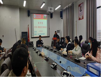 2021年3月11日,商公司党委书记晏超同志在422会议室为来自大一到大四的近80名员工干部作“开学第一课”暨党史学习教育报告,活动由辅导员陆志伟老师主持,共两个议程:一是合唱红歌《没有共产党就没有新中国》,二是晏超同志为大家开讲“开学第一课”!