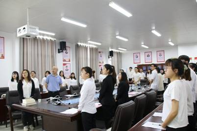 本次会议由员工第二党支部书记马瑞州同志主持,参会人员有商公司党委委员和商公司员工第二党支部全体党员。会议进行第一项,与会党员同志共唱《国际歌》。